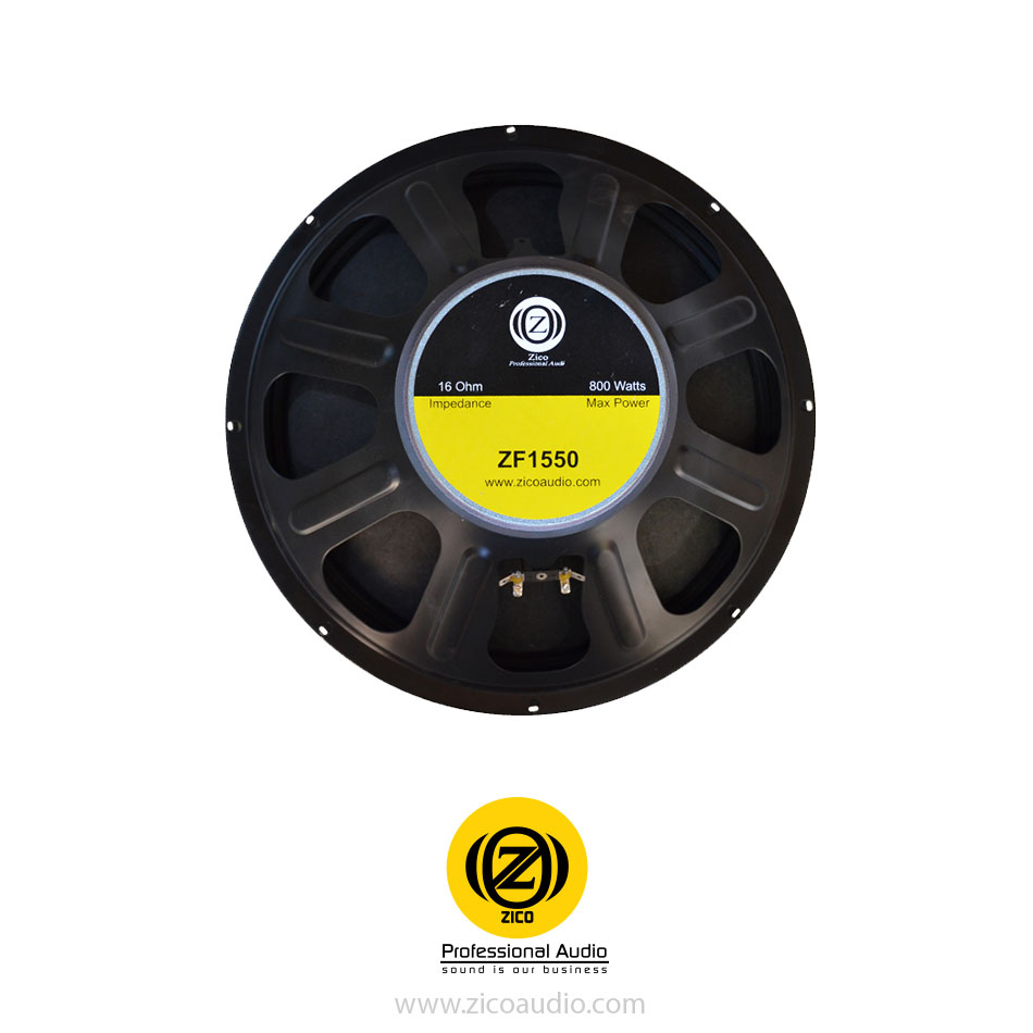 ZF-1550 یک بلندگوی خام ۱۵ اینچی است که از آن برای باندهای خانگی و حتی باندهای حرفهای استفاده میشود. جنس بدنه اسپیکر ZF-1550 زیکو محصول فلز است بنابراین، استحکام و مقاومت بالایی در برابر ضربه یا آسیب دارد. نحوه اتصال این اسپیکر با کابل است. توان خروجی آن برابر ۸۰۰ وات است. آمپدانس یک عامل مهم در انتخاب اسپیکر است. آمپدانس مدل ZF-1550 برابر با ۱۶ اهم میباشد. این محصول شامل ۳ سال گارانتی و ۱۰ سال خدمات پس از فروش توسط تجهیزات صوتی زیکو میباشد.