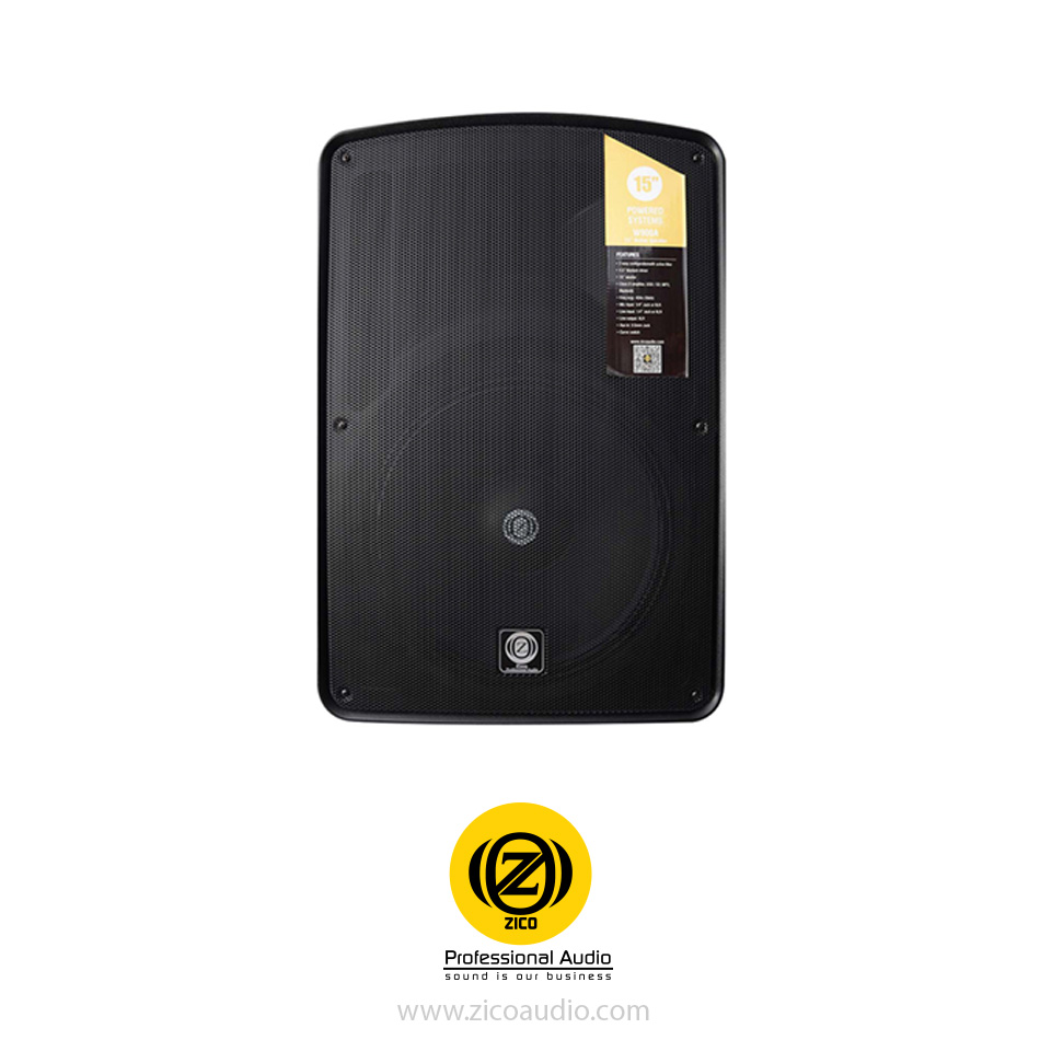 باند اکتیو زیکو W900A یک باند ۱۵ اینچی بسیار قوی و با قدرت 900 وات میباشد و از بهترینهای برند زیکو است. آمپلی فایر این باند از نوع کلاس D میباشد در نتیجه بازدهی بسیار بالایی دارد. این محصول جزء باندهای 2WAY است. یعنی دو سیستم فرکانسی جداگانه دارند. به عبارت دیگر یک درایور ووفر دارد که مسئول تولید فرکانسهای بم و زیر است و یک درایور تیوتر که مسئول تولید فرکانسهای تیز و بلند است. سایز ووفر ۱۵ اینچ است. این باند مجهز به پورت اتصال USB است و قابلیت پخش فرمت MP3 را دارد. به علاوه، امکان اتصال به بلوتوث را نیز دارد.