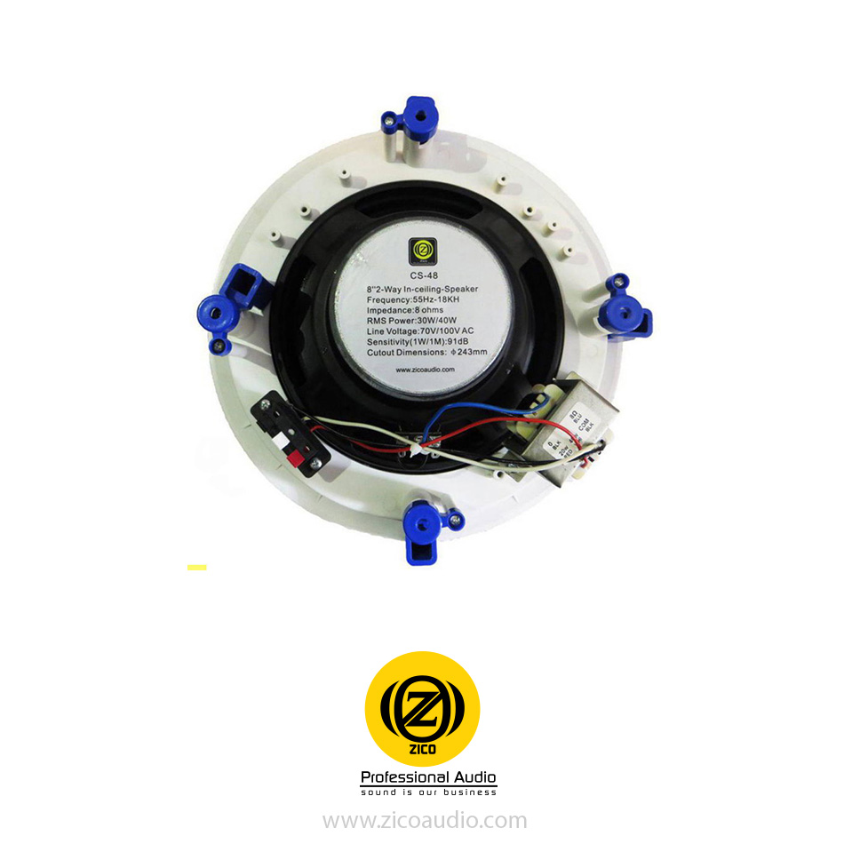 فقط قابل توجه مصرف کنندگان گرامی باشد که شرکت زیکو در مکان هایی که ازدحام زیاد است و یا صدایی با قدرت بالا همراه با بیس و کیفیت احتیاج دارند بلندگو مدل CS-48 را به شما پیشنهاد می کند که بزرگترین و پر قدرت ترین بلندگو سقفی موجود می باشد.