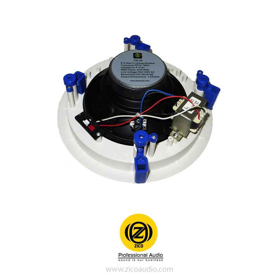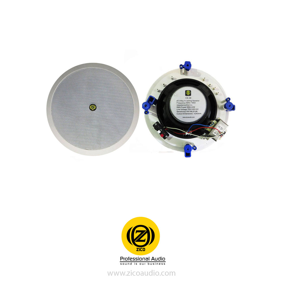 بلندگو و باند سقفی زیکو مدل CS-48 از نوع تو وی (Two Way) می باشد و به همین علت کیفیت صدایی این بلندگو نسبت به سری 3 بسیار بالاتر است این بلندگو بیشتر در سیستم صوتی رستوران ها ، کافی شاپ ها ، بوتیک ها ، سفره خانه های سنتی ، مجتمع های تجاری لاکچری ، سالن های ورزشی و مترو استفاده می شود و دارای قدرت 40 وات می باشد که نسبت به سایر بلندگوهای سقفی در این سایز کیفیت و صدای بسیار مطلوبی دارد ما این باند را برای کسانی که صدایی با بیس بالا احتیاج دارند پیشنهاد می کنیم.