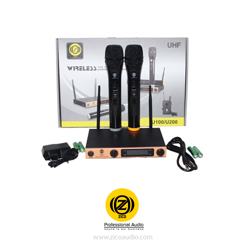 یکی از محبوبترین محصولات کمپانی زیکو میکروفن بی سیم مدل U-200H می باشد، که تحت لیسانس کشور آلمان و ساخت کشور کره جنوبی است. برد این میکروفن در فضای باز نزدیک به 800 متر است یعنی شما یه راحتی می توانید در فضاهایی که احتیاج به برد بسیار بالا دارید از این میکروفن با خیال راحت استفاده کنید. U-200H تنها میکروفن یک کانالی است که دارای دو آنتن می باشد و این موضوع این میکروفون بیسیم را منحصر به فرد کرده است.