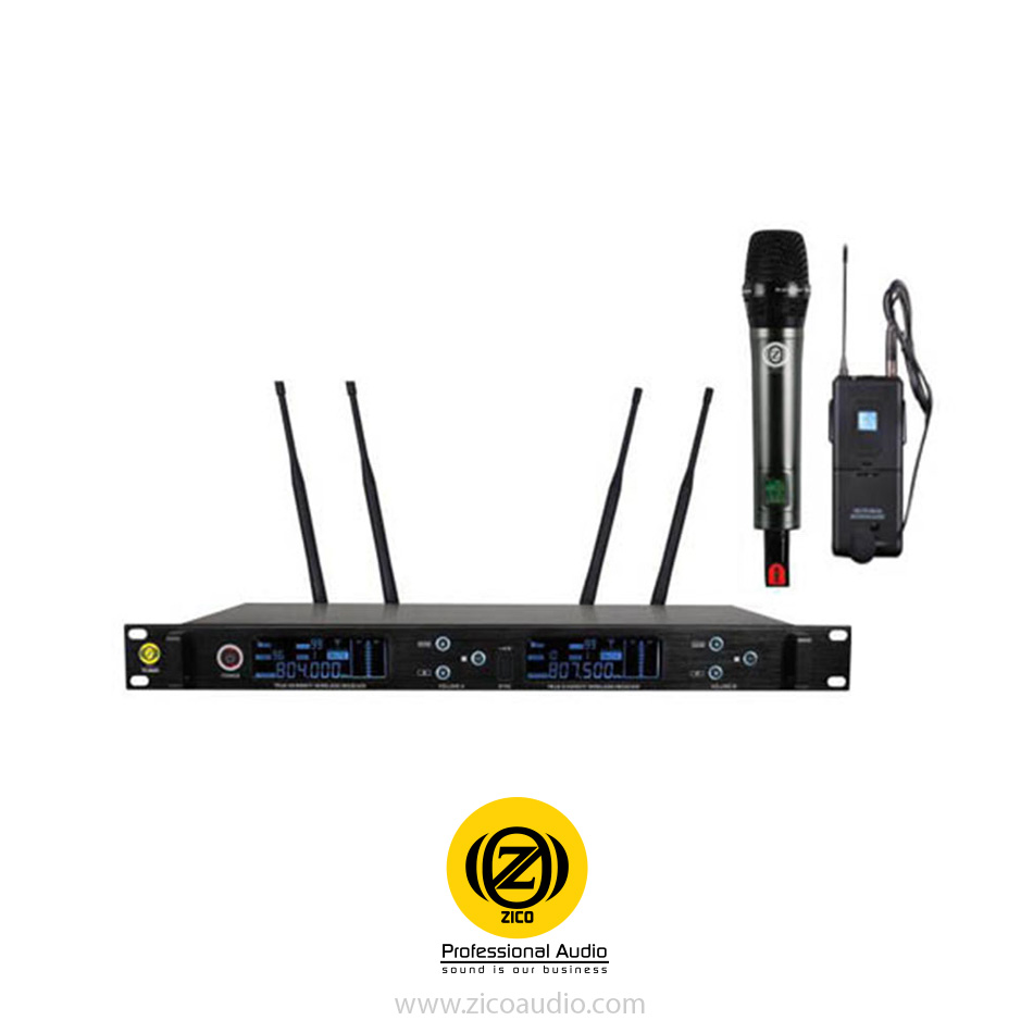 یکی از محبوبترین محصولات کمپانی زیکو میکروفن بیسیم مدل TD-9000HC می باشد، که تحت لیسانس کشور آلمان و ساخت کشور کره جنوبی است. برد این میکروفن در فضای باز نزدیک به 800 متر است یعنی شما یه راحتی می توانید در فضاهایی که احتیاج به برد بسیار بالا دارید از این میکروفن با خیال راحت استفاده کنید.TD-9000HC تنها میکروفن یک کانالی است که دارای دو آنتن می باشد و این موضوع این میکروفن را منحصر به فرد کرده است.